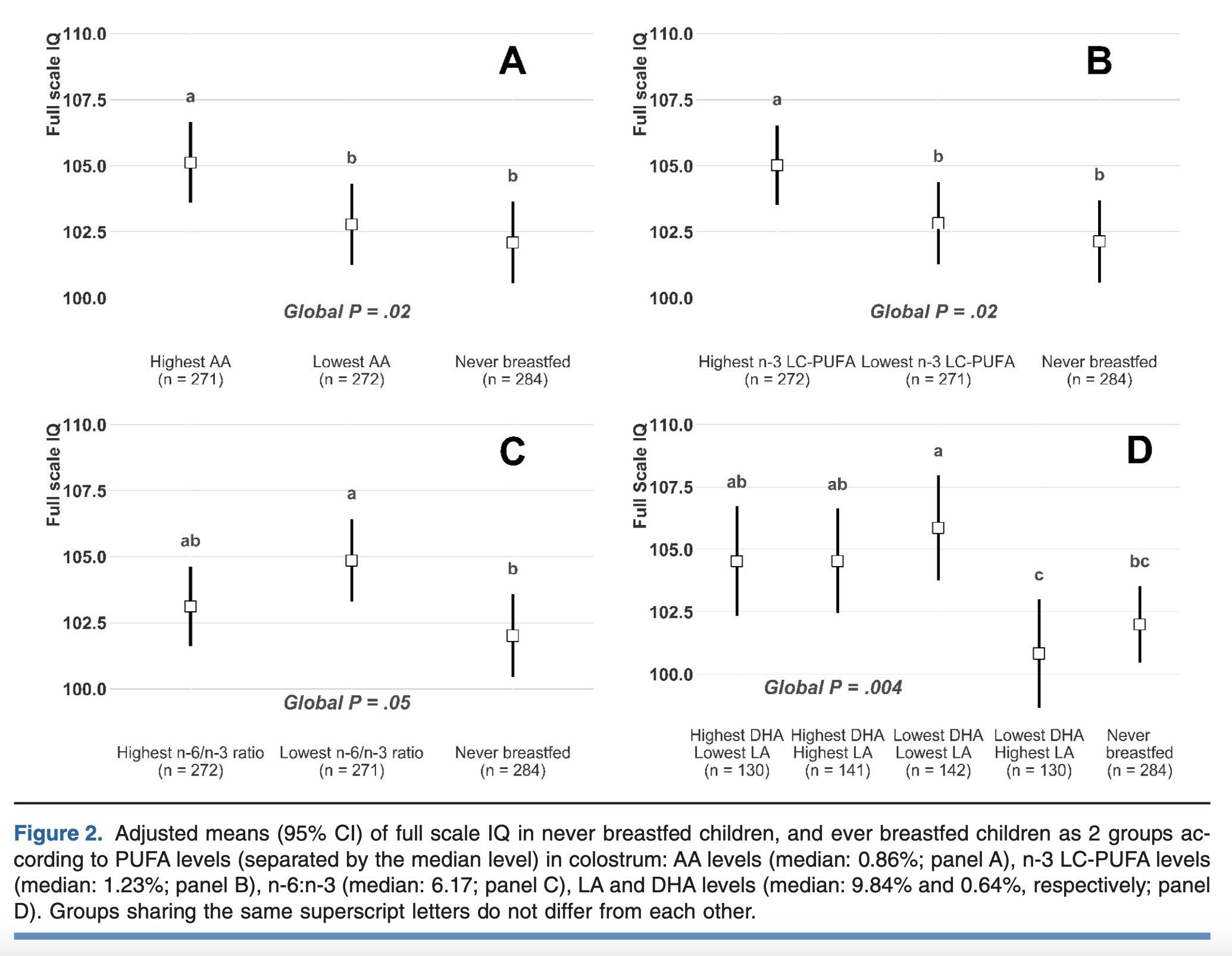 Linoleic acid in breast milk strongly related to lower intelligence in children.