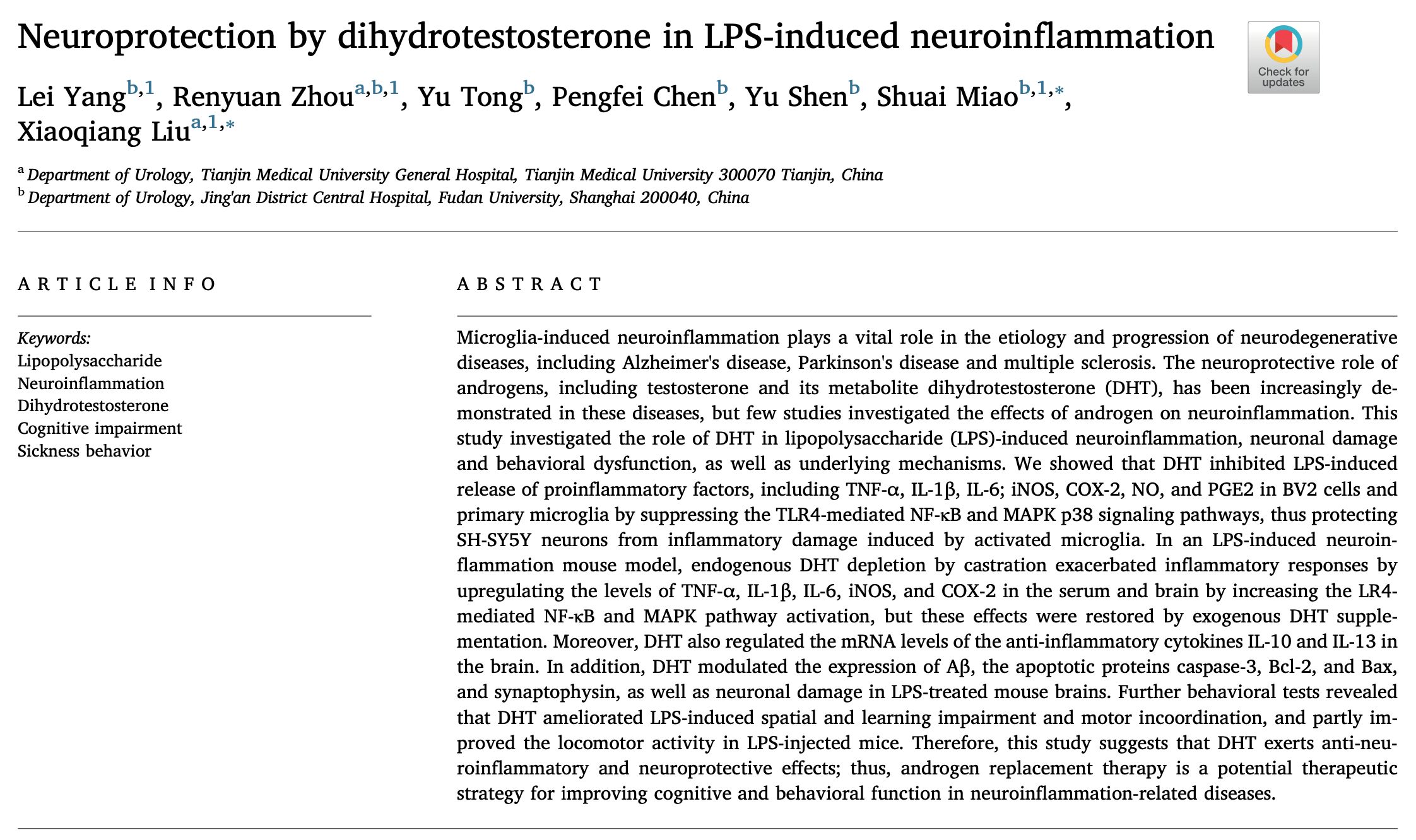 DHT protects your neurons from endotoxin's inflammatory effects -- may improve cognition if you have a leaky gut.
