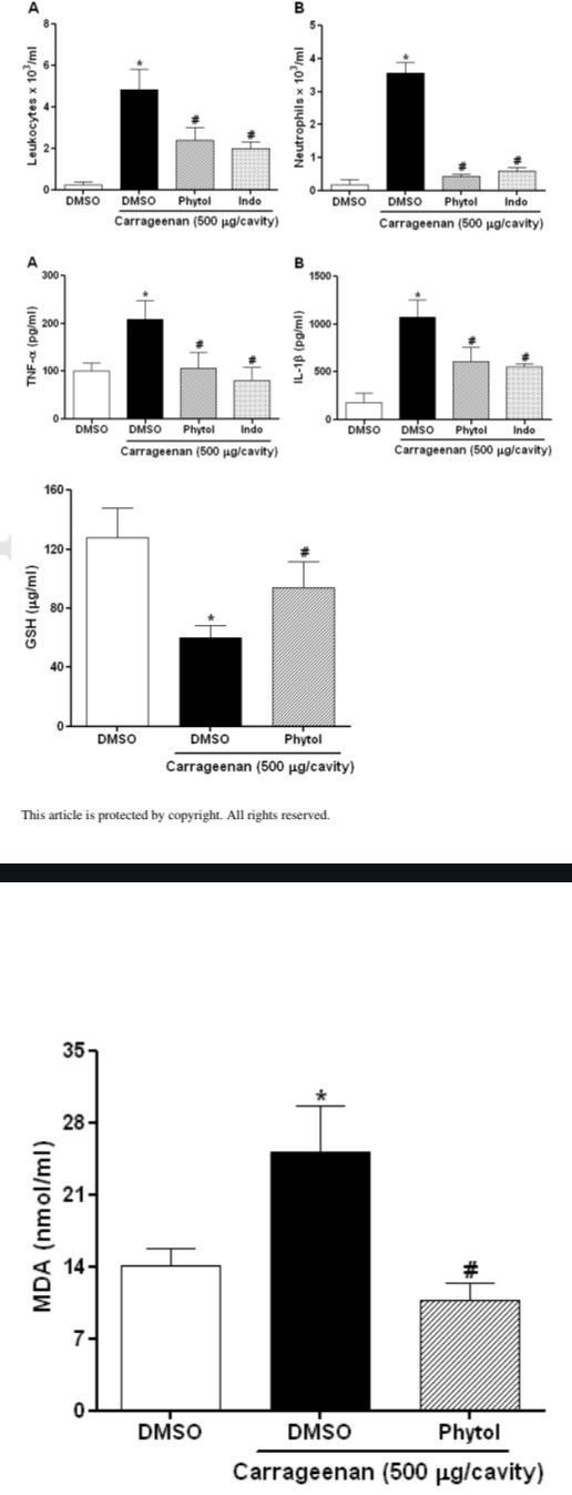Phytol produces antihyperalgesic, anti-inflammatory, and antiarthritic effects [10].