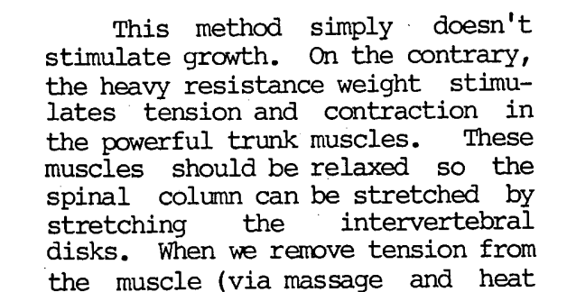 As a side note, in this school, he was using a leg stretching splitter machine, which involved no elongation of the joints; this confirmed that my theory of training the joints must be along the right path.He said that spinal exercies are the best as the spine is much more prone to growing. I also believe they are the most efficient and accesible exercises.